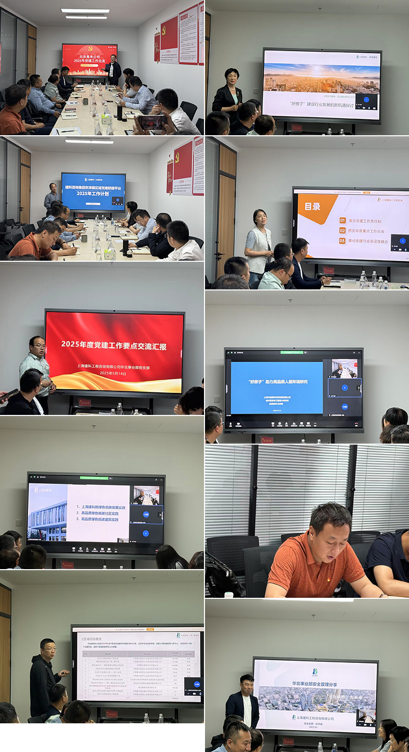 2025年5月14日,上海建科咨詢集團京津冀區域化黨建聯建平臺組織京津冀區域有關機構在雄安開展“黨業融合聚合力質效提升促發展”主題實踐學習交流活動。天津咨詢黨委書記孫亞龍,集團華北區域管理中心常務副主任瞿新麗,天津咨詢、北京奧來、建科咨詢華北事業部相關人員、黨務部門負責人、分公司經理、項目經理、總監等參加會議。建科院城更所、建科院低碳院綠建部應邀線上參會。會議由天津咨詢黨委書記孫亞龍主持。