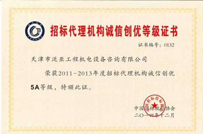 2011-2013年度招標(biāo)代理誠信創(chuàng)優(yōu)5A級企業(yè)