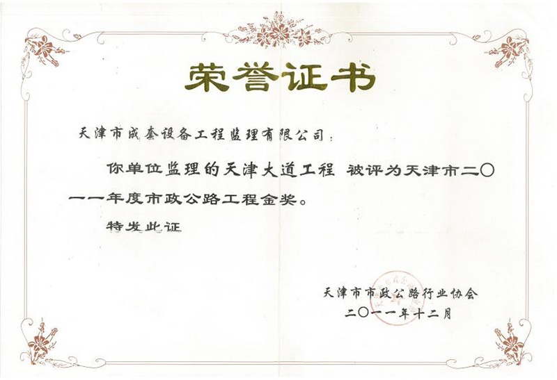 市政公路工程金獎(2011年)