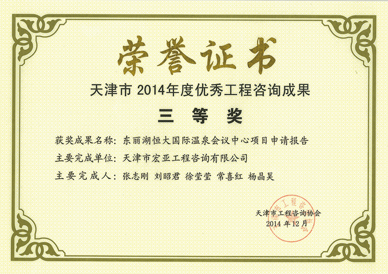 優秀咨詢成果三等獎(2014)