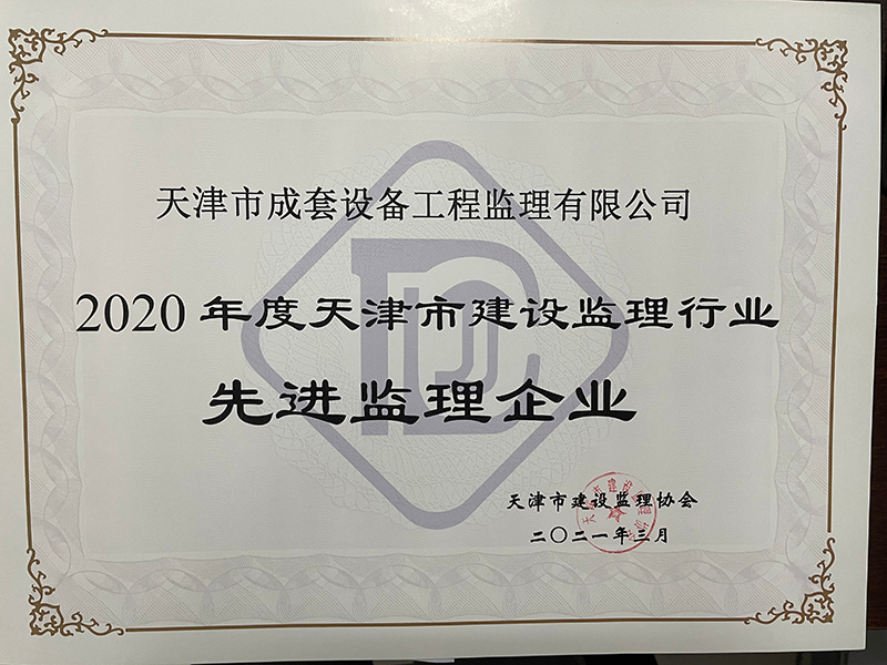 2020年度天津市建設監理行業先進監理企業