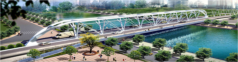 天津市進(jìn)步橋工程 更新時間:2021-09-14 點擊:2338 所屬欄目:市政基礎(chǔ)設(shè)施 該橋橫跨張自忠路、海河以及海河?xùn)|路。橋梁總長180米,主跨128米,面積4985.2 平米,為自錨式桁吊組合鋼結(jié)構(gòu)橋。總投資2.65億元。該橋梁設(shè)計在國內(nèi)外尚屬首創(chuàng)。 服務(wù)內(nèi)容 項目管理